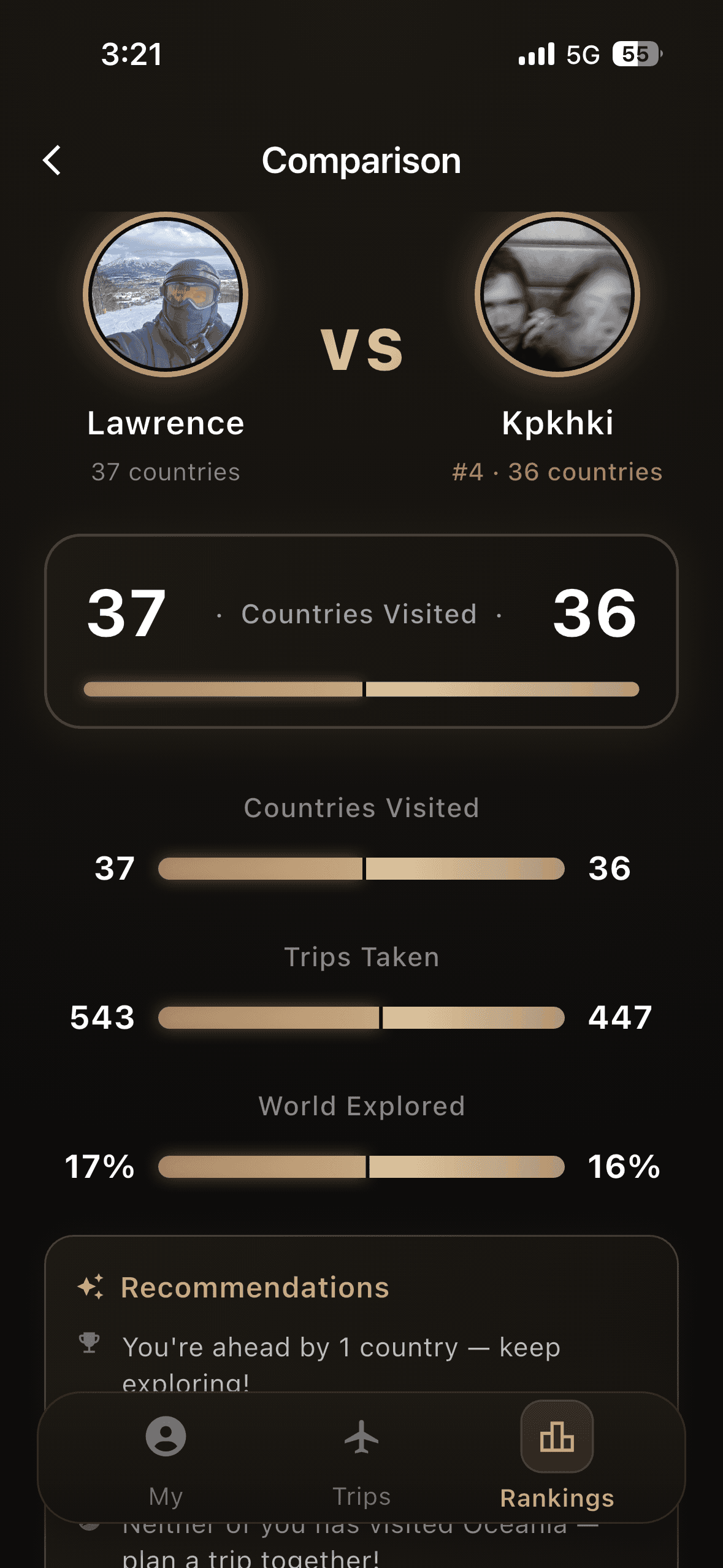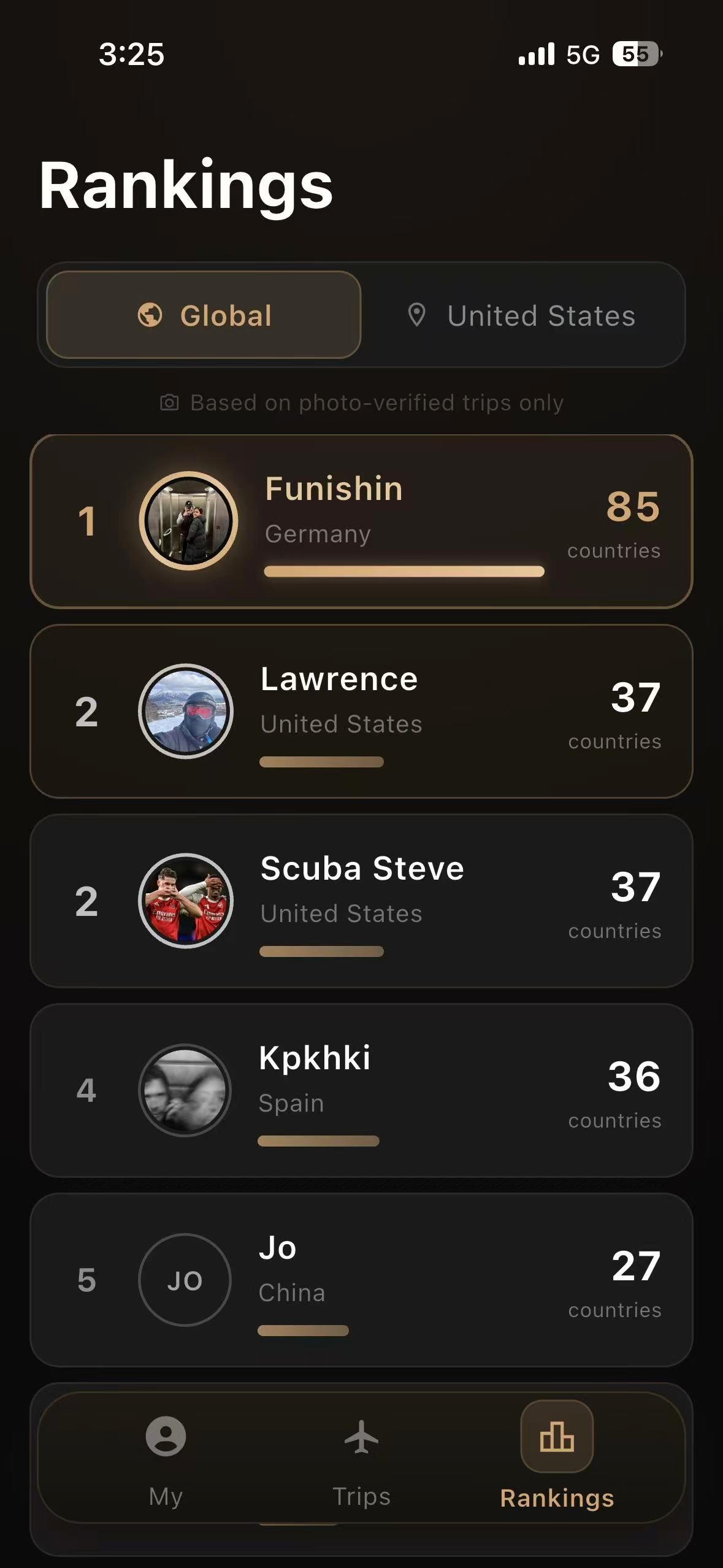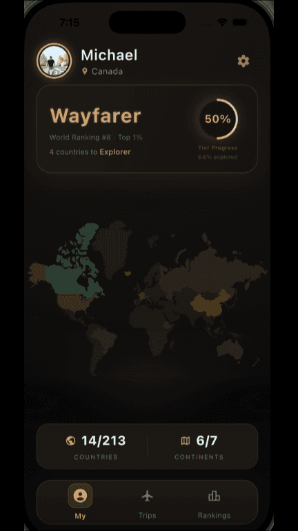 Venture scans your photo library to identify countries, cities, and regions, then converts your lifetime travel into a single competitive ranking.