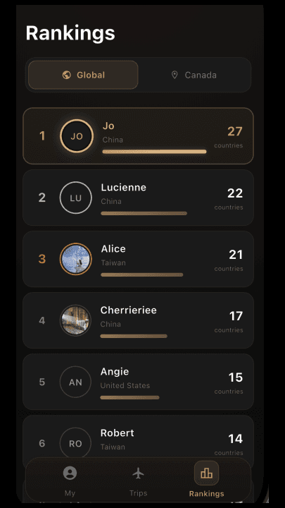 Discover where you and your friends have explored together with comprehensive, interactive timelines. Share experiences, reminisce about past adventures, and stay connected through each other’s unique travel stories.
